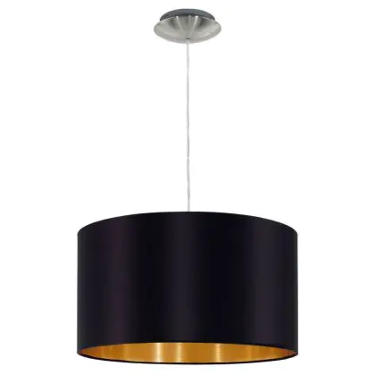Die Eglo Pendelleuchte Maserlo Stahl Satin-Nickel | Geeignet für E27 sorgt für eine angenehme Ausleuchtung und punktet durch modernes Design. Diese Leuchte ist speziell zur Montage an der Decke vorgesehen.
