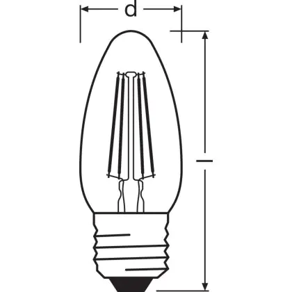 Die Ledvance Classic LED E27 Kerze Fadenlampe Klar 4W 470lm - 827 Extra Warmweiß | Ersatz für 40W ist eine effiziente E27 LED-Lampe mit Retrodesign und der perfekte Ersatz für Ihre konventionellen 40W Lampen mit E27. Zudem strahlt sie Licht in der Farbtemperatur 2700K - Extra Warmweiß aus und punktet durch eine lange Lebensdauer.
