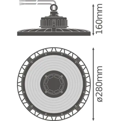 Diese LED-Hallenleuchte punktet mit einer Leuchtkraft von 13.000 Lumen (lm) und strahlt damit besonders viel Helligkeit aus. Die ebenfalls hohe Lichtausbeute von 140 lm/W zeugt von einer guten Effizienz. Wenn Sie die Stärke dieses Lichts mit dem Ihrer konventionellen Lichtlösung vergleichen möchten, empfehlen wir Ihnen einen Blick in unsere praktische Tabelle Lumen in Watt umrechnen.