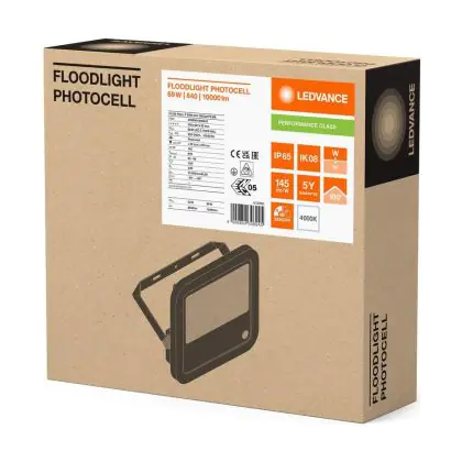 Der Ledvance Led-Scheinwerfer Aluminium Schwarz 69W 10000lm 100D - 840 Kaltweiß | IP66 - Lichtsensor - Symmetrisch ist ein Scheinwerfer und strahlt Licht in der Farbtemperatur 4000K - Kaltweiß aus. Zudem punktet der LED-Scheinwerfer durch eine lange Lebensdauer.