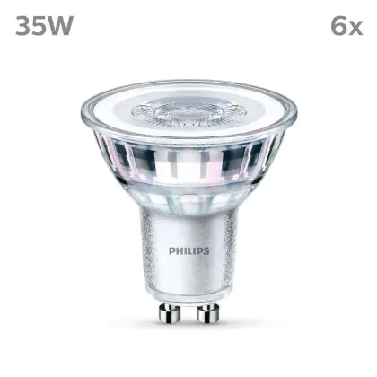 Die Lumeneffizienz des GU10 LED-Strahlers von Philips liegt bei lm/W. Herkömmliche GU10-Strahler hingegen besitzen ein Lumen zu Watt-Verhältnis von 10-15 lm/W. Somit sparen Sie allerhand Energiekosten. Hinzu kommt die lange Lebensdauer des GU10 LED-Strahlers von 15000. Somit spendet er deutlich länger Licht als ein herkömmlicher Halogenstrahler, der mit nur rund 3000 Stunden daherkommt. Das spart Ihnen zusätzlich Austausch- und Wartungskosten.