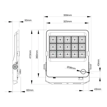 Beschreibung Noxion LED-Scheinwerfer ProBeam V2.0 133-210W 18200-29400lm 60D - 830-840-865 CCT | IP66 - Symmetrisch