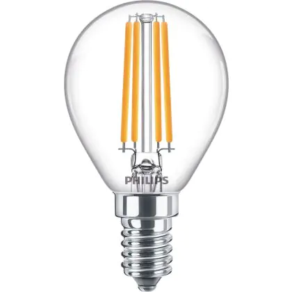 Die Philips Corepro LED Lustre E14 Kugel Fadenlampe Klar 6.5W 806lm - 840 Kaltweiß | Ersatz für 60W ist eine effiziente E14 LED-Lampe mit Retrodesign und der perfekte Ersatz für Ihre konventionellen 60W Lampen mit E14. Zudem strahlt sie Licht in der Farbtemperatur 4000K - Kaltweiß aus und punktet durch eine lange Lebensdauer.