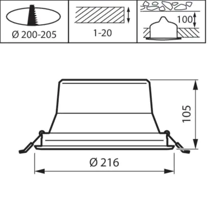 Der Ausschnitt einer Leuchte unterscheidet sich von den Abmessungen der Leuchte selbst und bezeichnet speziell die Größe der Öffnung in der Decke, die für die sichere Montage der Lichtquelle benötigt wird.