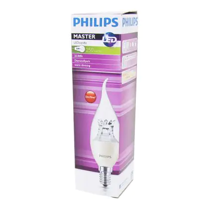 Die Philips MASTER LED Kerze E14 Gebogen-tip Krone Klar 2.8W 250lm - 822-827 Dim To Warm | Dimmbar - Ersatz Für 25W ist eine effiziente E14 LED-Lampe und der perfekte Ersatz für Ihre konventionellen 25W Lampen mit E14-Sockel. Zudem strahlt sie Licht in der Farbtemperatur 2200K - 2700K Dim To Warm aus und punktet durch eine lange Lebensdauer.