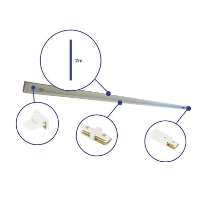 Beschreibung Rail Set 1-Phasen 2 Meter Weiß | incl. Abschlusskappe, Stromanschluss und I-Verbinder