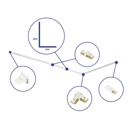 Beschreibung Rail Set 1-Phasen L 1 x 2 Meter Weiß | incl. Abschlusskappe, Stromanschluss und L -Verbinder